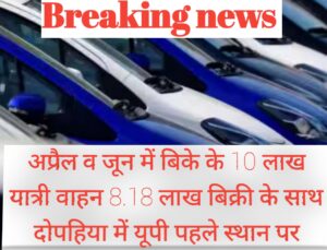 अप्रैल व जून में बिके के 10 लाख यात्री वाहन 8.18 लाख बिक्री के साथ दोपहिया में यूपी पहले स्थान पर
