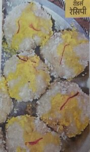 125 ग्राम चावल का आटा, 250 मिलीलीटर पानी, 100 ग्राम खजूर बीज रहित, दो चम्मच किशमिश, 50 ग्राम ड्राई फ्रूट्स काजू बादाम पिस्ता आदि बारीक कटे ,1/2 चम्मच हरी इलायची पाउडर, दो चम्मच देसी घी, दो चम्मच नारियल का बुरादा, केसर के कुछ धागे दूध में भीगा,