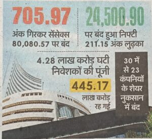 ट्रंप टैरिफ के दबाव में सेंसेक्स दो शास्त्रों में 1,555 अंक टूटा 9.85 लाख करोड़ डूबे