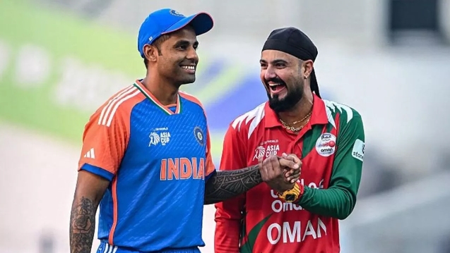 Asia Cup 2025 के 12वें मैच में भारत और ओमान की टीम आमने-सामने आई। इस मुकाबले में टॉस जीतकर भारतीय कप्तान सूर्यकुमार यादव ने पहले बल्लेबाजी करने का फैसला किया। भारत की शुरुआत धीमी रही, शुभमन गिल जल्दी आउट हो गए, लेकिन संजू सैमसन ने महत्वपूर्ण 56 रन बनाकर पारी को संभाला। अभिषेक शर्मा ने 38 रन बनाकर टीम को मजबूत स्थिति दी। टीम इंडिया ने 20 ओवर में 8 विकेट खोकर 188 रन बनाए.